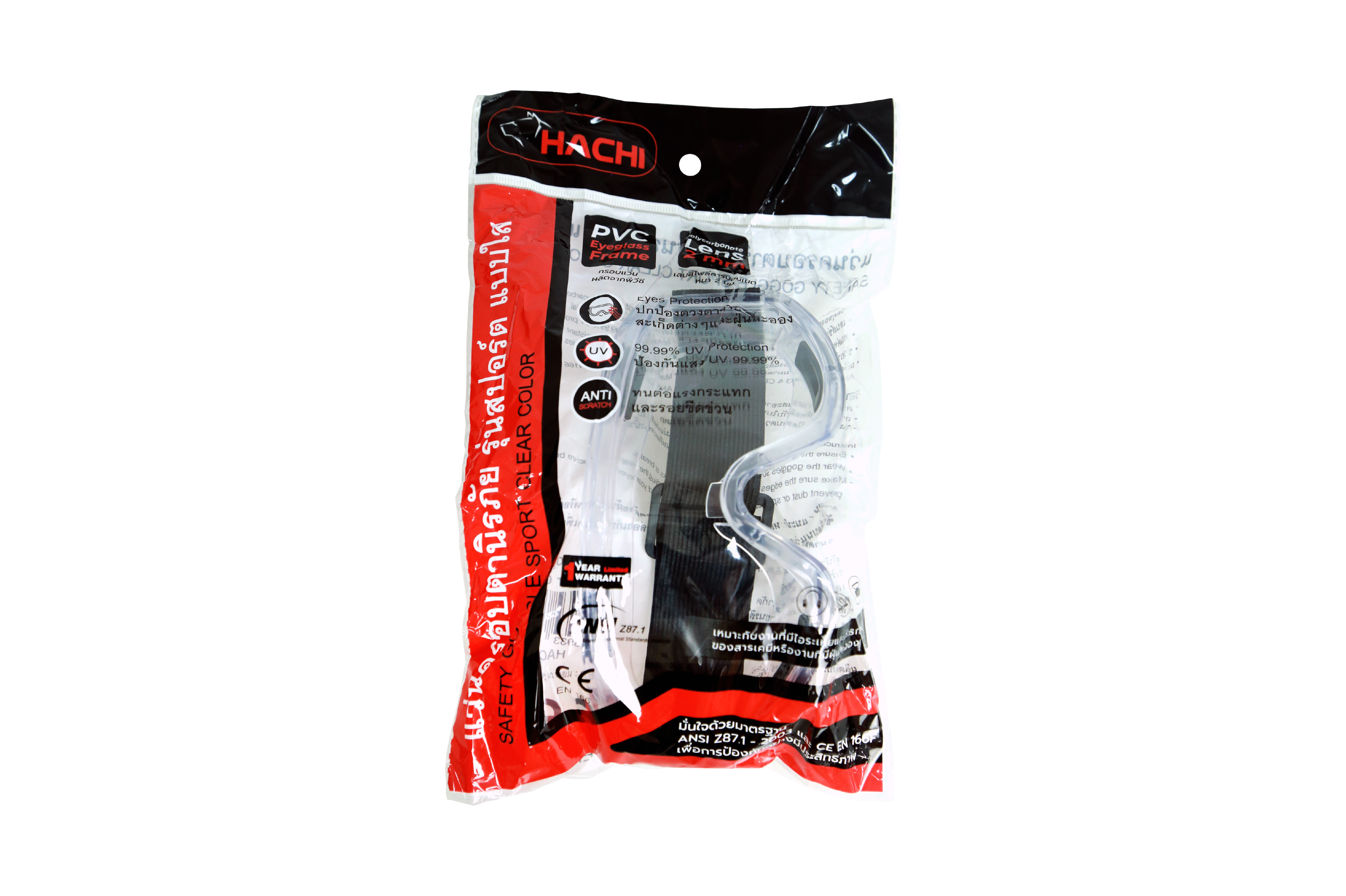 แว่นครอบตานิรภัย รุ่น สปอร์ต Safety Goggle Sport Clear Color