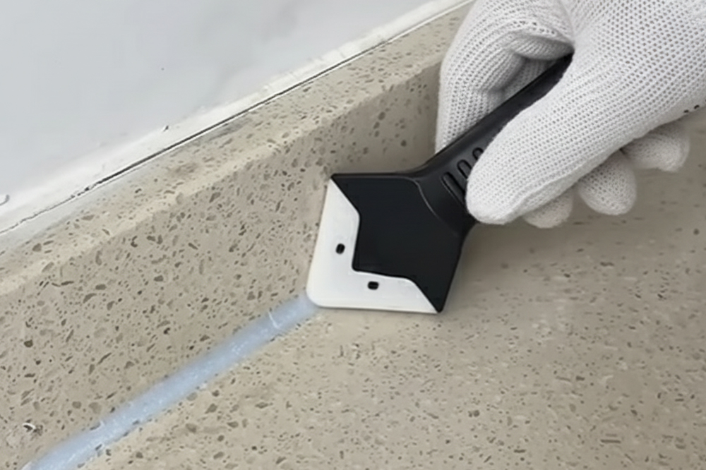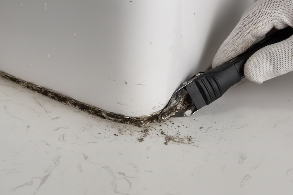 - ขูดคราบกาวซิลิโคนเก่าออกด้วยหัวขูดกาวซิลิโคน