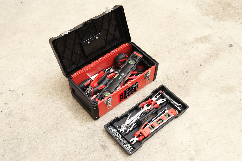 - มีถาดแบ่ง / แยกจัดเก็บอุปกรณ์ภายในกล่องเครื่องมือ