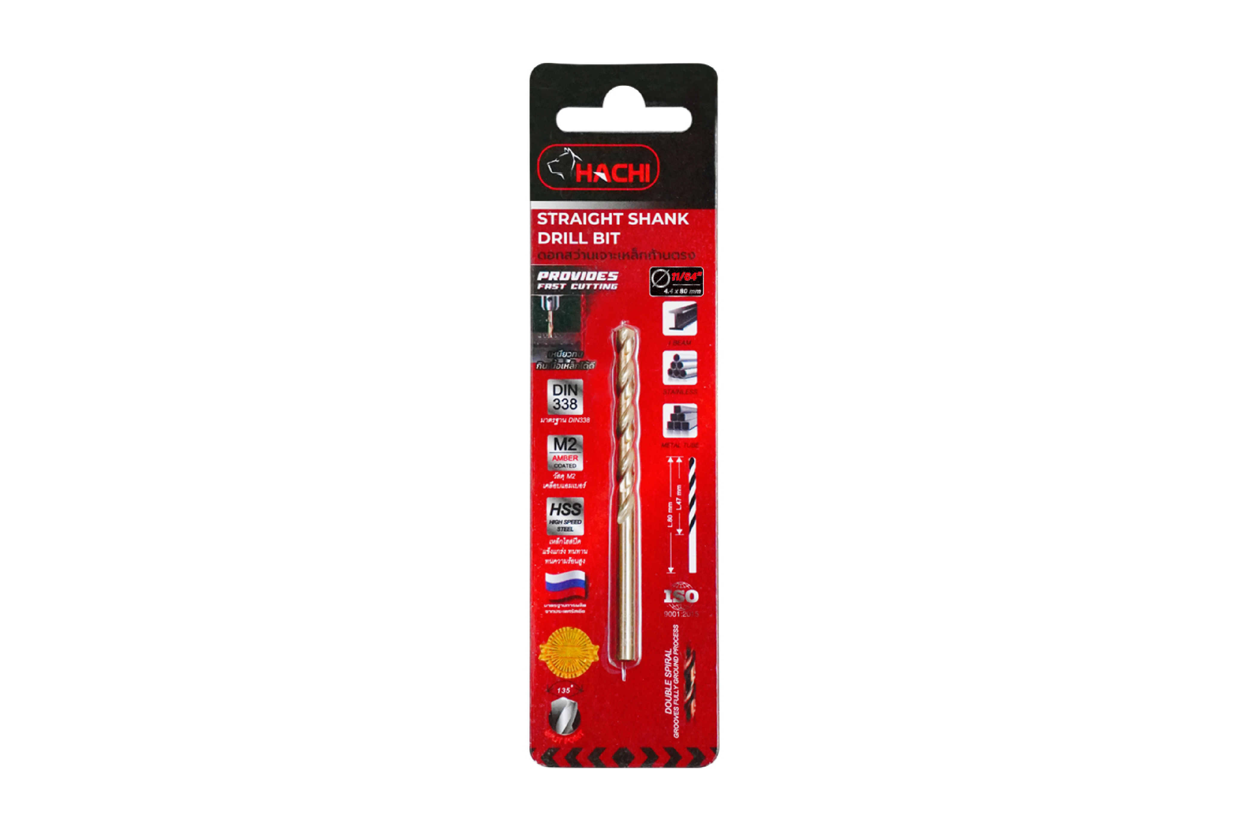ดอกสว่านเจาะเหล็กก้านตรง 13/64” (5 มม. ) x 86 มม. Straight Shank Drill Bit 13/64” (5 mm )x 86 mm