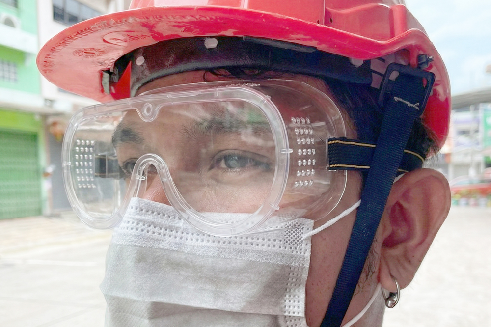 • ให้ขอบแว่นปิดรอบดวงตาเพื่อป้องกันไม่ให้ฝุ่นและละอองน้ำเล็ดลอดเข้า