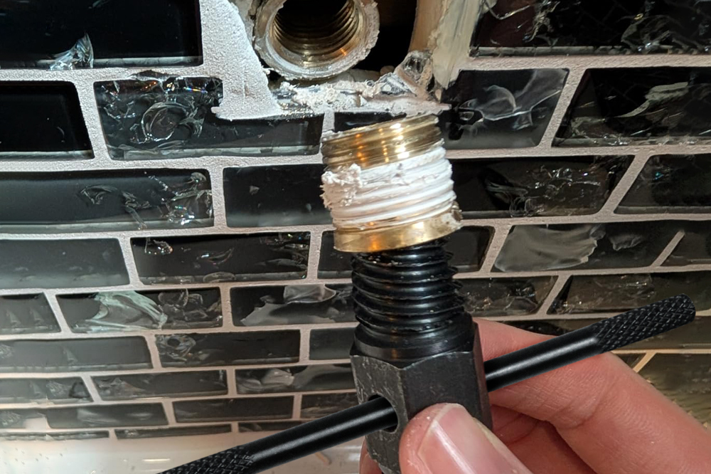 • ใส่ดอกถอนเกลียวเข้าไปในรูที่ต้องการถอนแล้วนำแท่งเหล็กใส่เข้าไปในรู ดอกถอนเกลียวแล้วหมุนทวนเข็มนาฬิกา