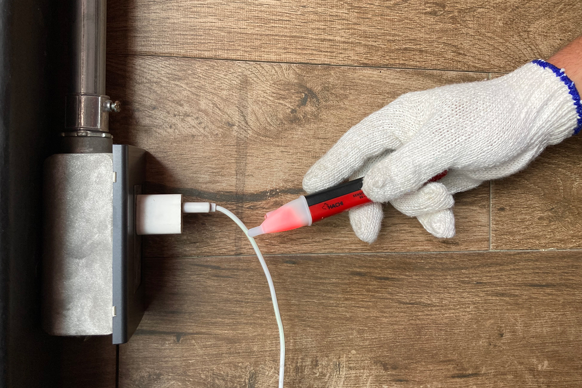 - นำปากกาเช็คกระแสไฟวางทาบหรือแนบกับอุปกรณ์หรือเครื่องใช้ไฟฟ้าที่ต้องการทดสอบกระแสไฟ แสงที่ปลายปากกาจะติดและมีเสียงบี๊บในกรณีที่ตรวจพบกระแสไฟฟ้าผ่านอุปกรณ์ดังกล่าว